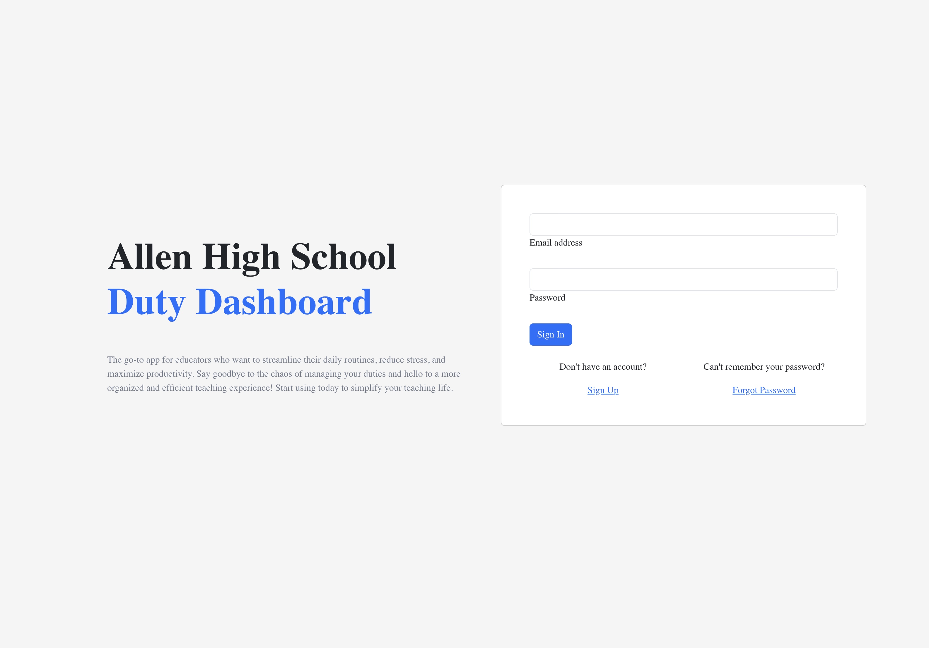 Our application features a secure login portal that allows teachers to access their duty assignments from any device.